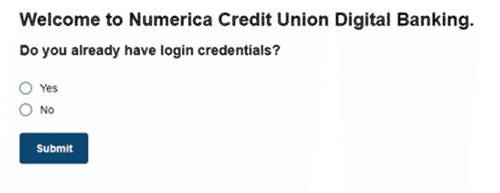 Do you already have login credentials, possibly from another Numerica account? If so, select Yes and log in to link your credentials to this business account. You're all set!