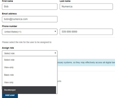 To the far right, select +Add a new role. Note that if you have more than one account linked, you will need to select a business from the dropdown.