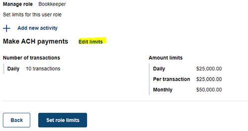 Note: Limits are set for the role level, not user level. You can return to adjust the privileges and limits of a role at any time by selecting it from the Role management screen.